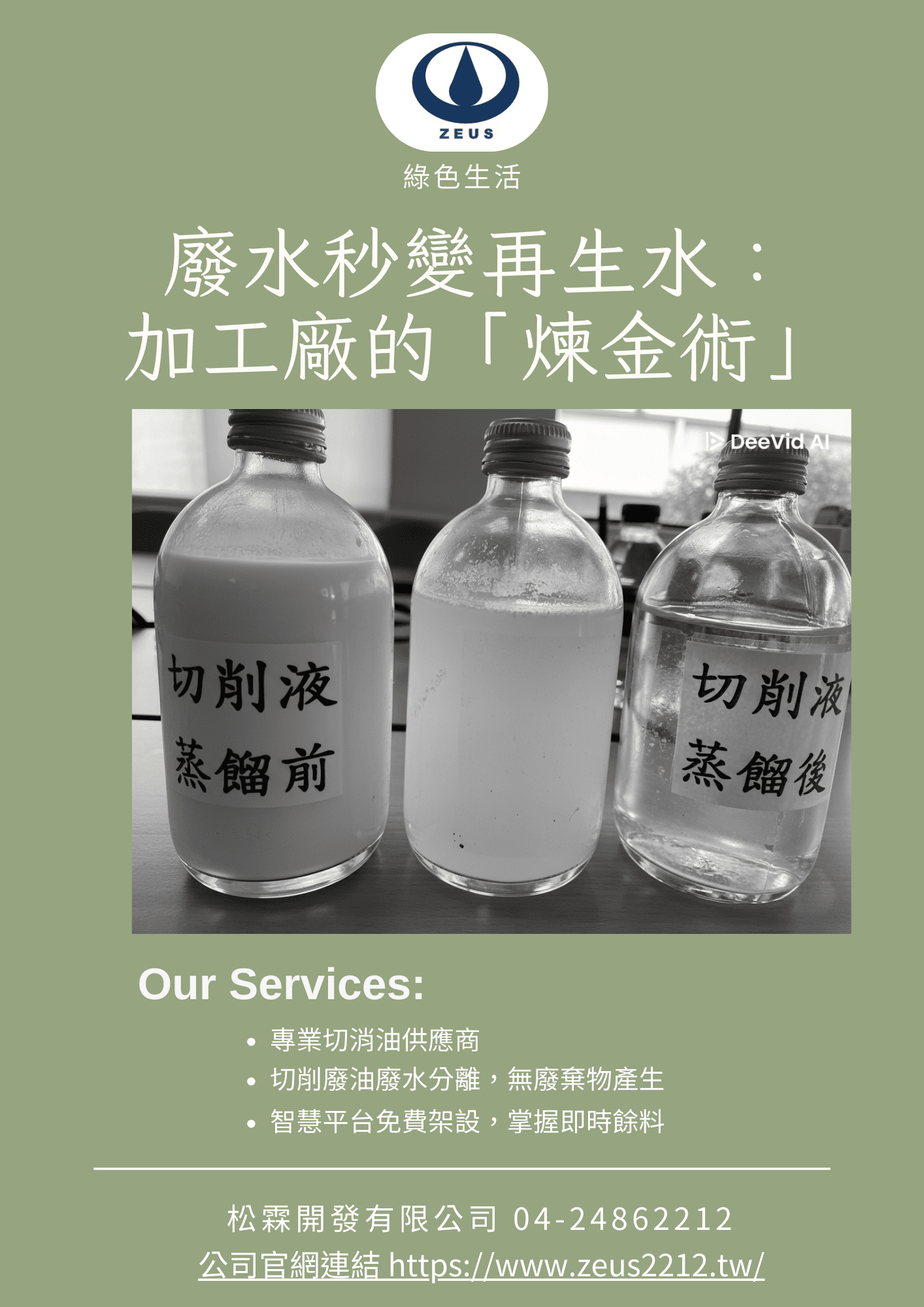 在永續成為全球共識的時代,企業必須在提升生產效率與環境責任之間找到平衡。切削液廢水因含油、化學物及懸浮雜質,一直是加工產業難以處理的痛點。真空蒸餾技術藉由降低壓力,使廢水完成蒸發分離,不但能減少能耗,更能大幅降低化學藥劑依賴。經處理後,平均 20 桶廢水可回收出 19 桶再生水,有效減少外送清運與碳排。結合雲端智慧平台,管理者可透過自動化數據分析掌握節省費用、回收量及環保成效,達到透明治理(G 的核心)。企業從廢液成本轉向資源循環,不僅提升環境績效(E),也讓員工在更潔淨安全的環境下工作(S)。這是一種真正「看得見成效」的永續投資。