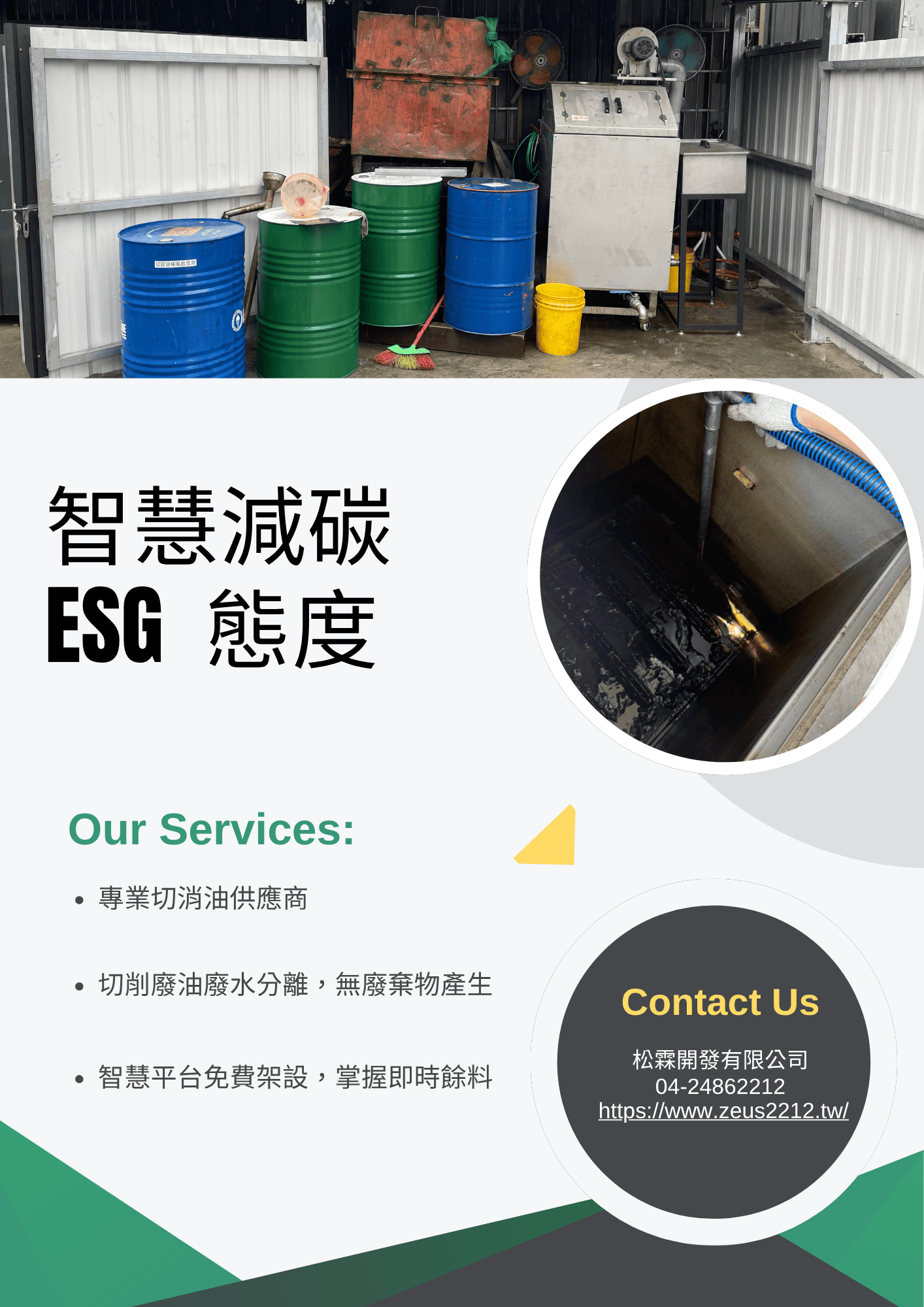 在全球倡議 ESG(環境、社會、公司治理)與淨零碳排的浪潮下,企業不只追求產能與效率,更要兼顧永續與責任。許多五金、CNC 加工廠每年產生大量切削液廢水與油污,傳統委外清運費用高昂,一年約 20 桶廢液就需支出 12 萬元處理費用,不僅耗費成本,也造成碳排與環境負擔。